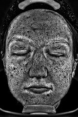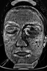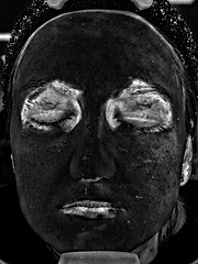 Firstly we captured an image using the UV filter on our skin analysis camera, to show what the skin looks like with no sun protection on. Features like dark spots, freckles and areas of UV damage are evident by dark grey spots on the skin, representing where skin is more prone to absorbing UV rays. We then applied our recommended amount of sunscreen (¼ teaspoon) to the face. In the images below, we are able to see where the layer of sunscreen (a UV absorber that shields the skin) is present on the skin, as it is represented by the dense dark grey colour.