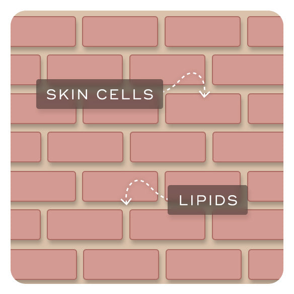 The skin barrier is the very top layer of your skin, also known as the epidermis. Its core function is to keep essential moisture locked in while keeping environmental irritants out. The skin barrier is formed from skin cells and lipids. The skin cells are tightly packed together (much like bricks in a wall), while the lipids act as the mortar that holds the wall together.