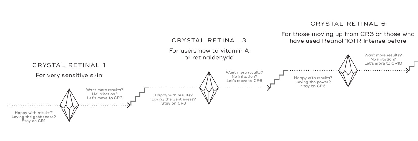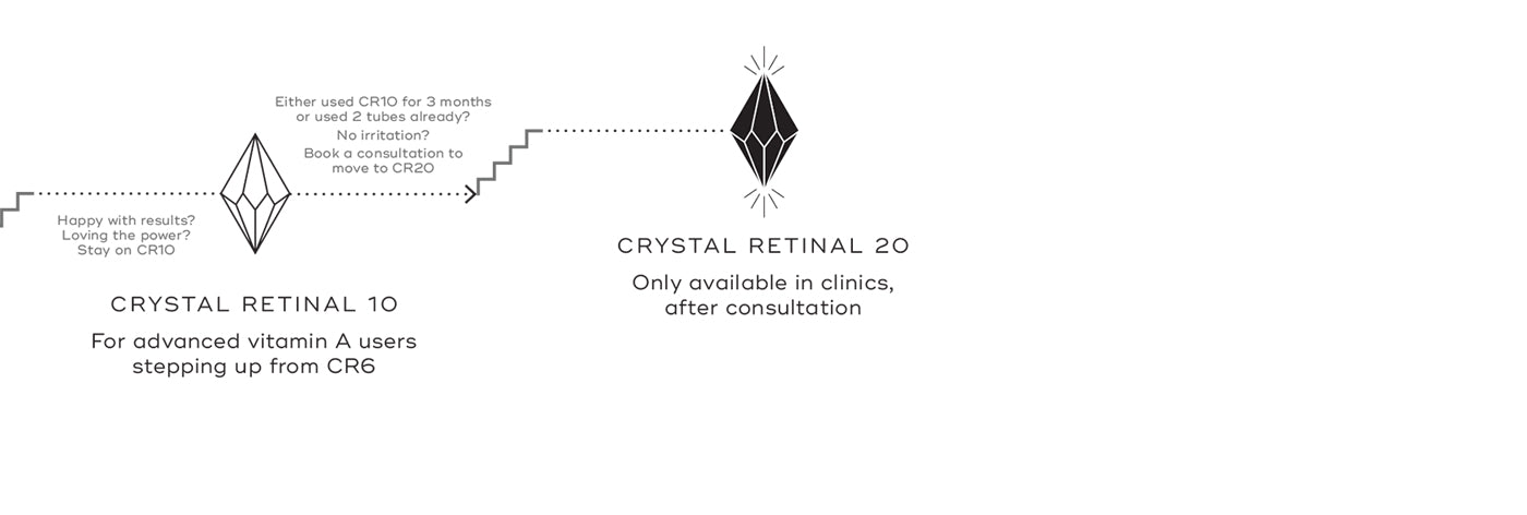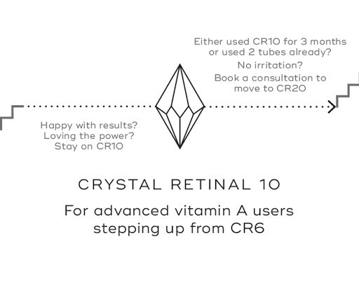 You should be comfortably using Crystal Retinal 10 every night for 3 months or completed 2 full tubes before you consider moving up.