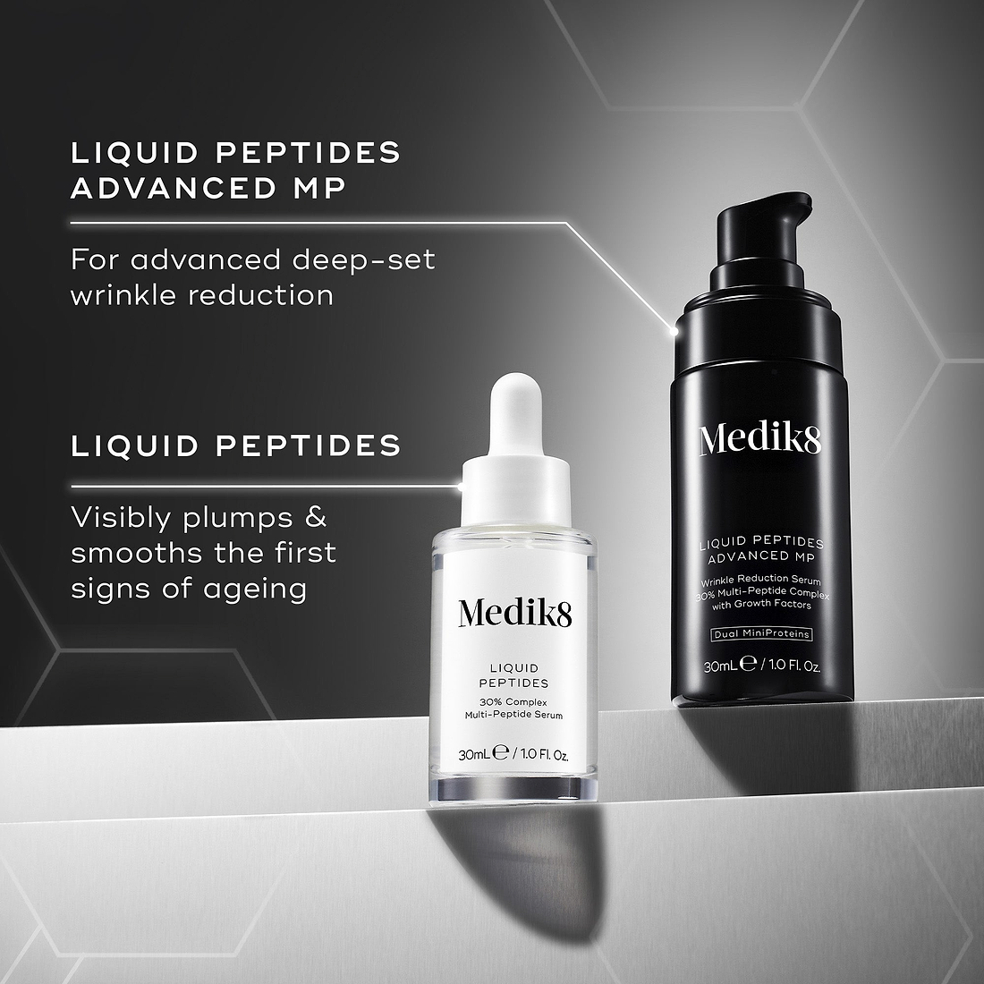 Liquid Peptides Advanced MP is optimised for clinically proven results on visible expression lines & deep-set wrinkles over time.