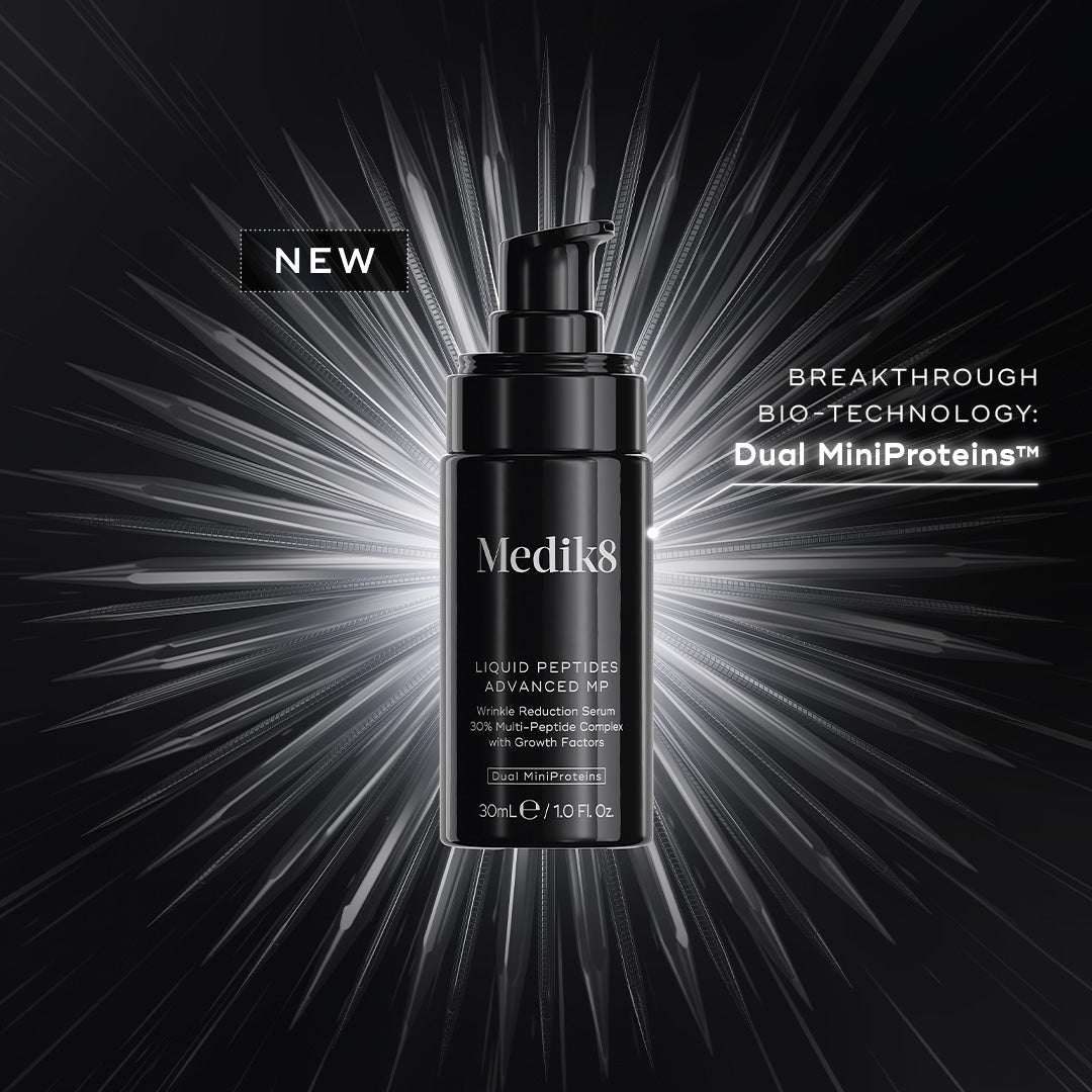 Experience Liquid Peptides Advanced MP, featuring a breakthrough bio-technology: Dual MiniProteinsTM within a 30% multi-peptide complex, engineered to deliver dramatic & lasting visible wrinkle reduction.